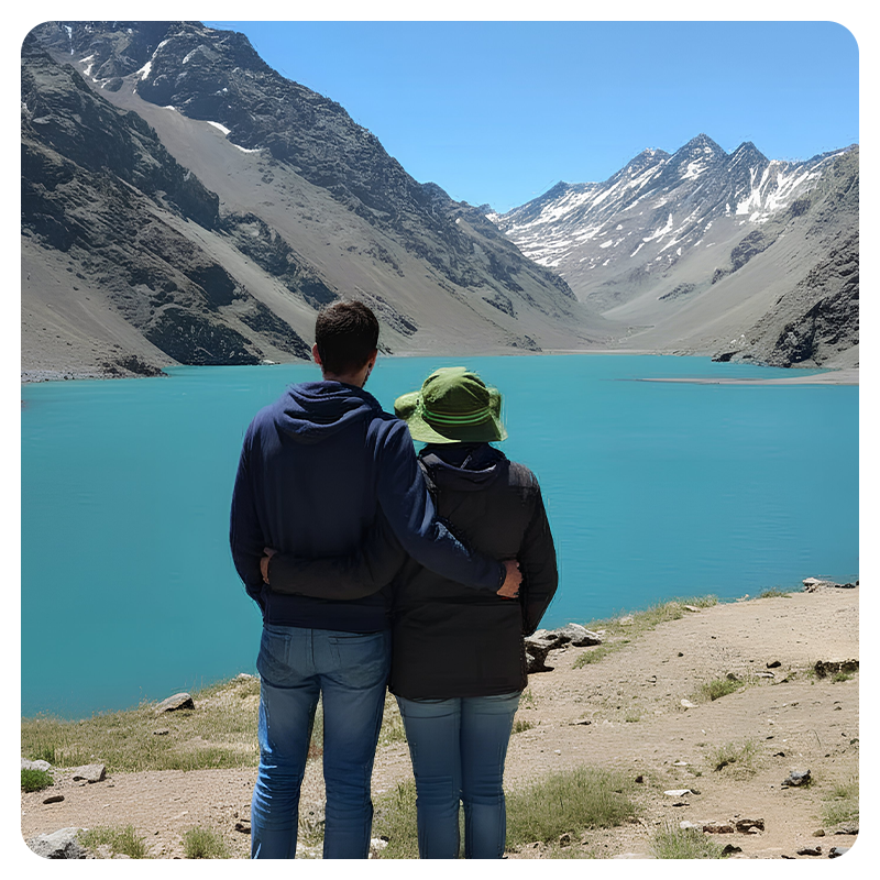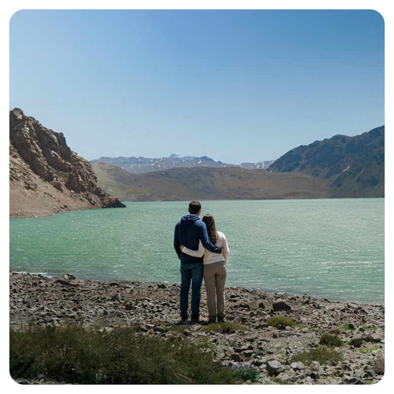 Explora Cajón del Maipo y Embalse El Yeso. Admira montañas, aguas turquesas y disfruta un picnic con sabores chilenos. Finaliza con la dulce Casa de Chocolate