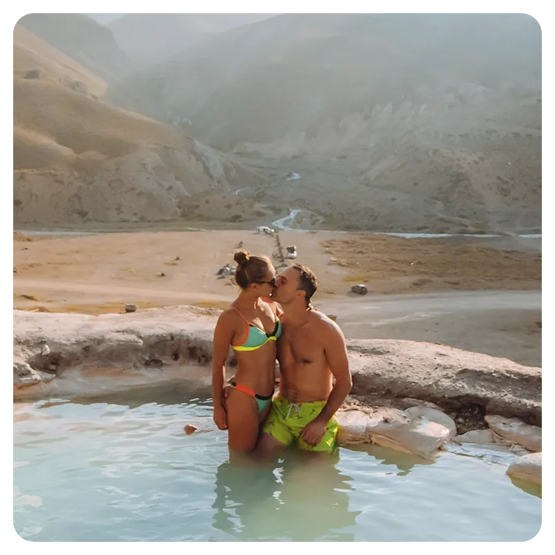 Disfruta las Termas de Colina bajo el cielo estrellado de los Andes. Relájate en aguas termales junto al volcán San José y saborea un picnic con sushi y sabores chilenos.